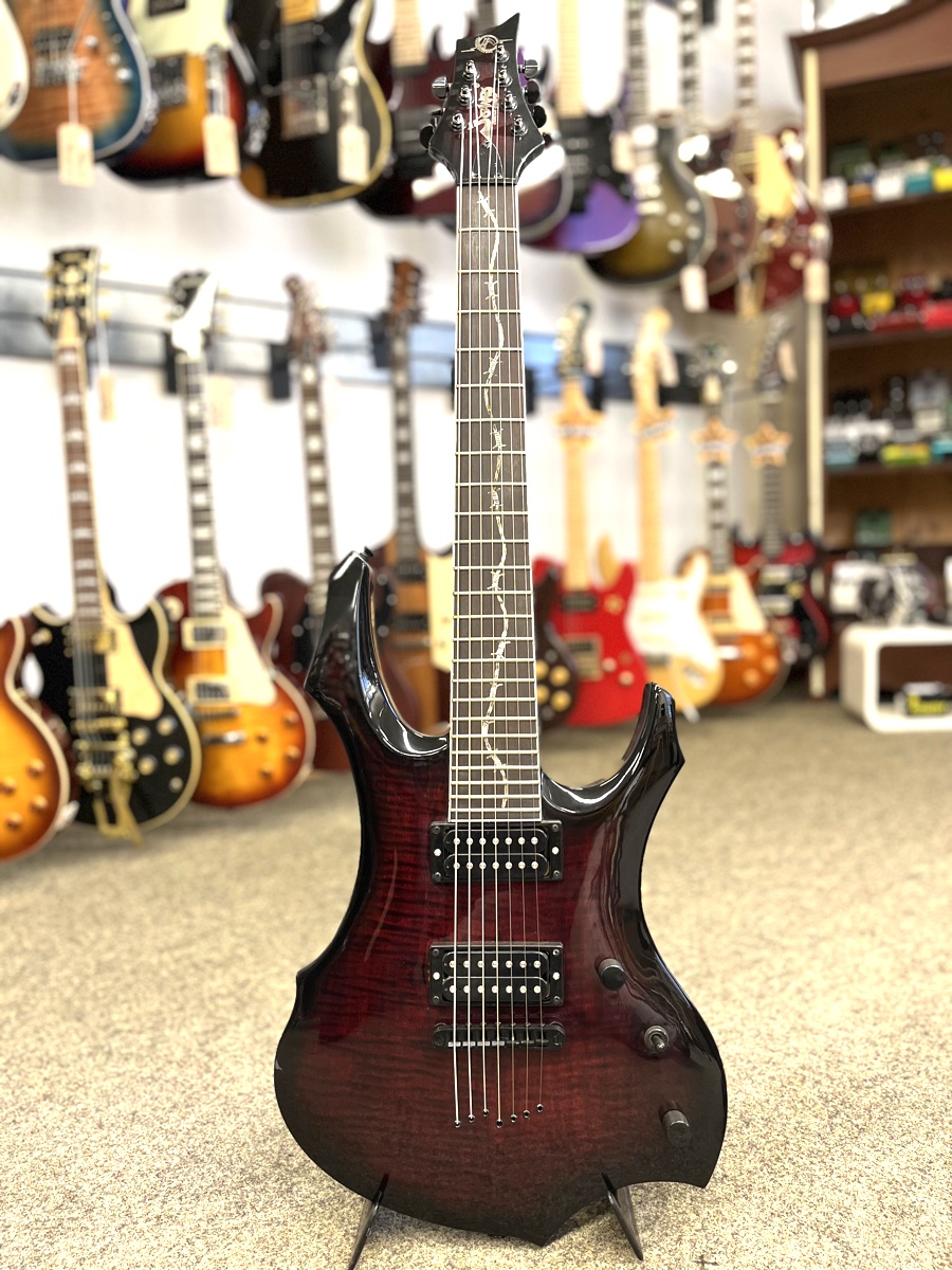 - Korpus: Solidbody Pappel, Decke flamed Maple (Ahorn)